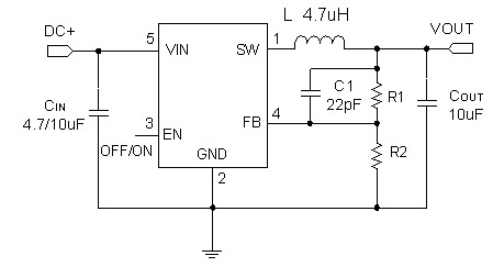 The internal synchronous switch is desired to increase efficiency without an external Schottky diode. The 1.2MHz switching frequency allows the using of tiny, low profile inductors and ceramic capacitors, which minimized overall solution footprint.
